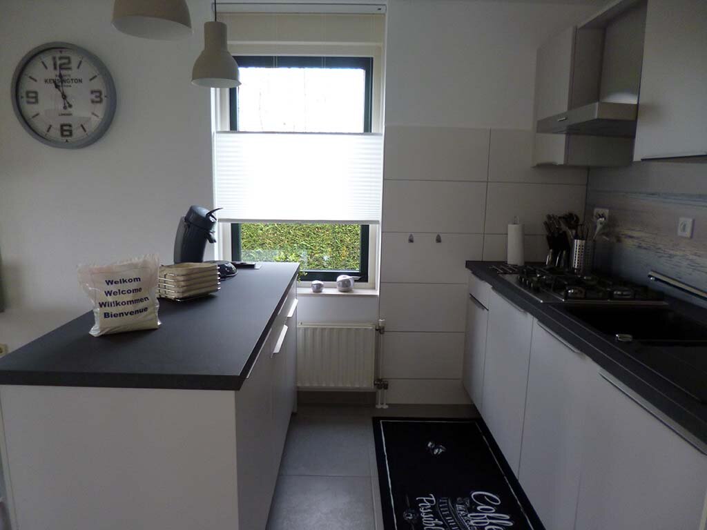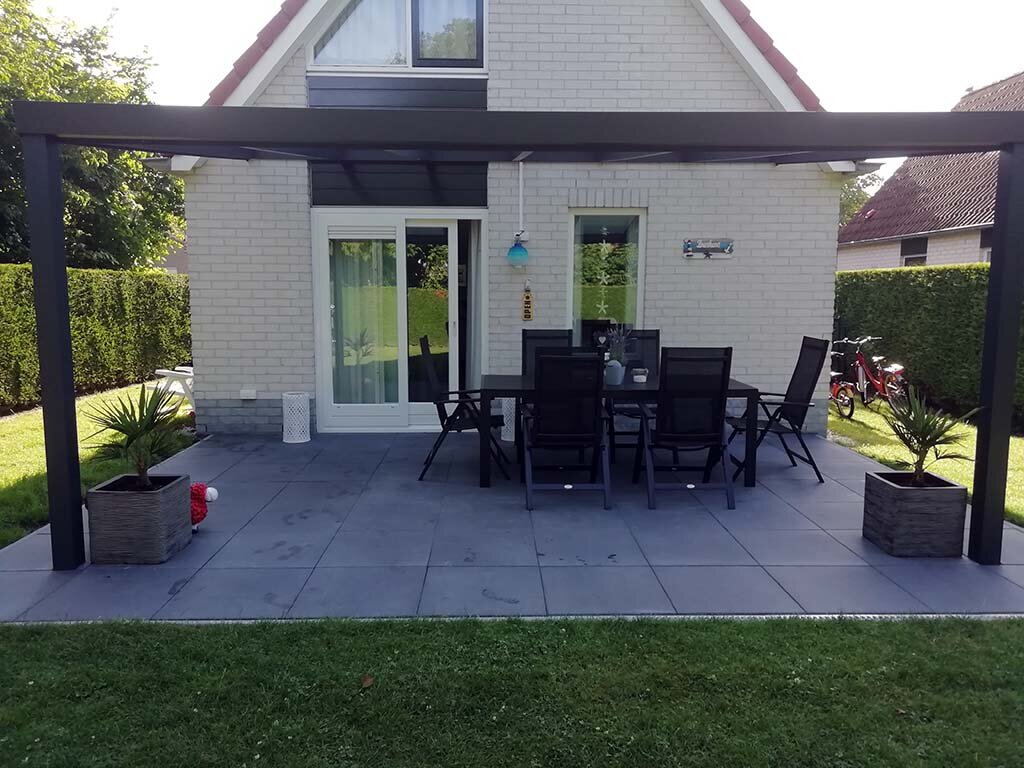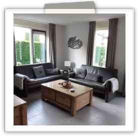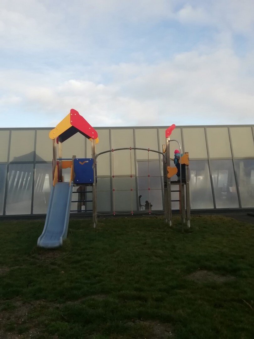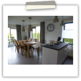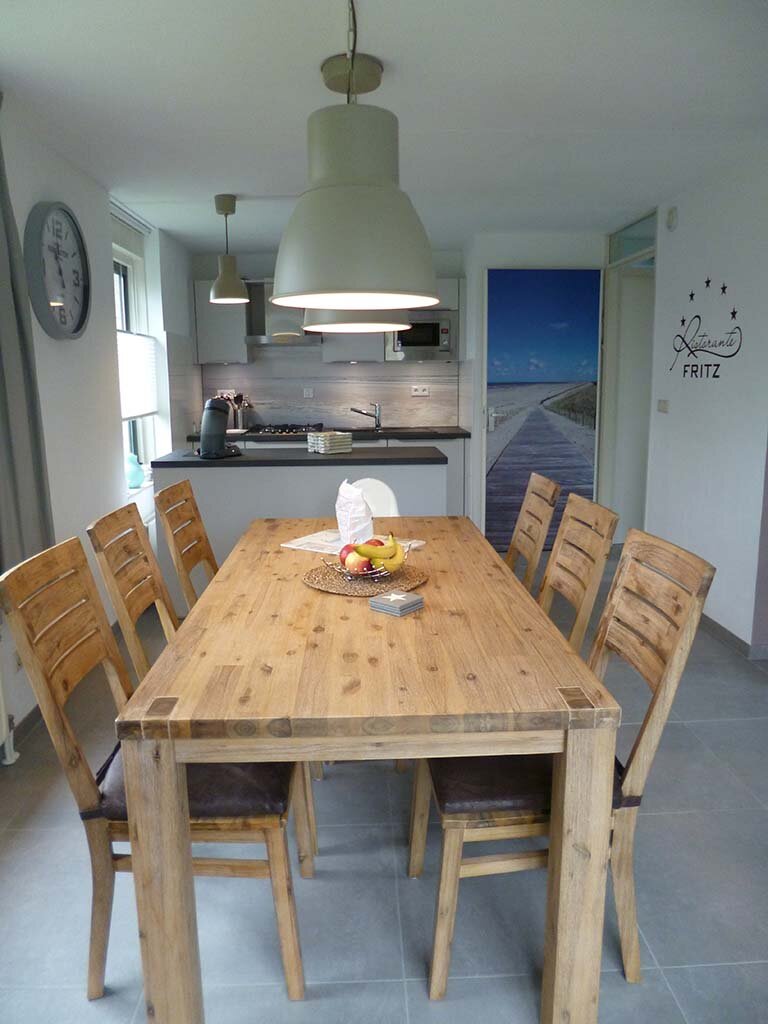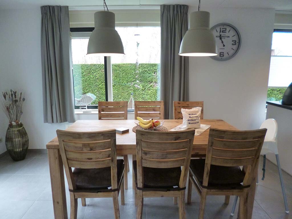 Im Erdgeschoss befindet sich ein Schlafzimmer mit zwei Einzelbetten, Gäste WC und ein großer Wohn/ Essbereich mit Zugang zur Terrasse und eingezäunten Garten. Auf der großzügigen Terrasse spendet eine Terrassenüberdachung mit Markise Schutz bei Regen und Sonne.