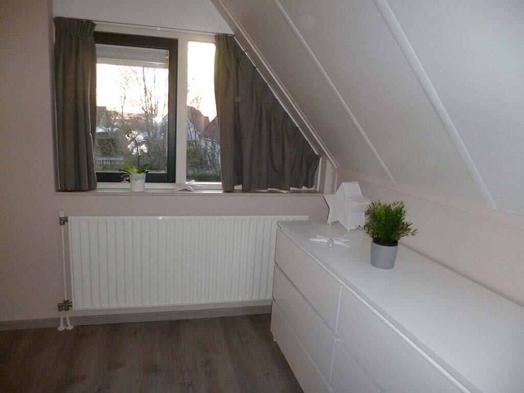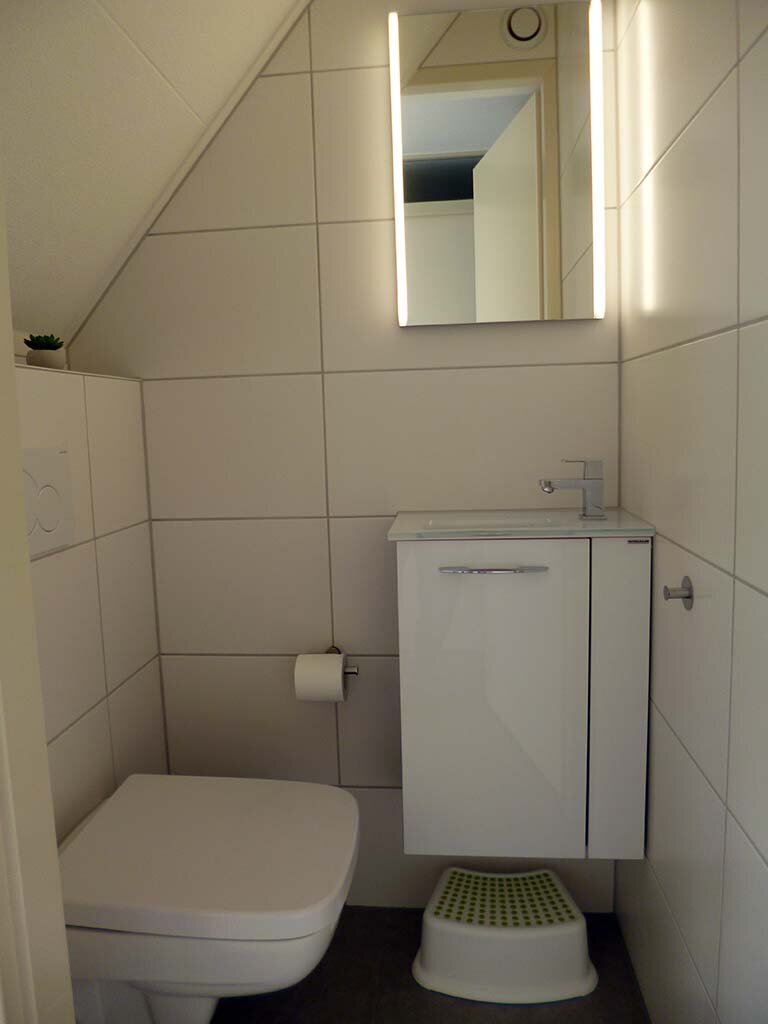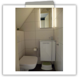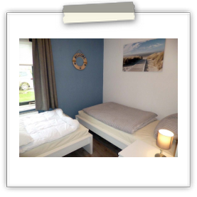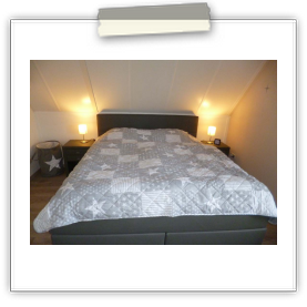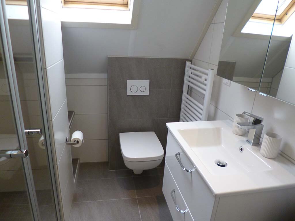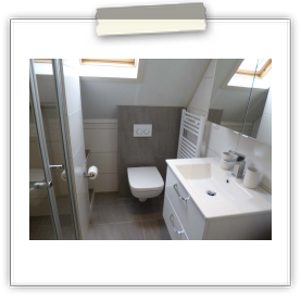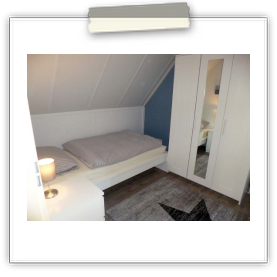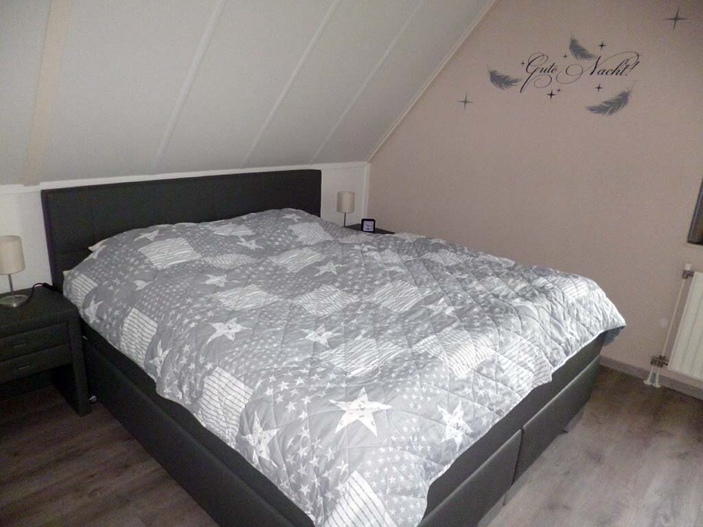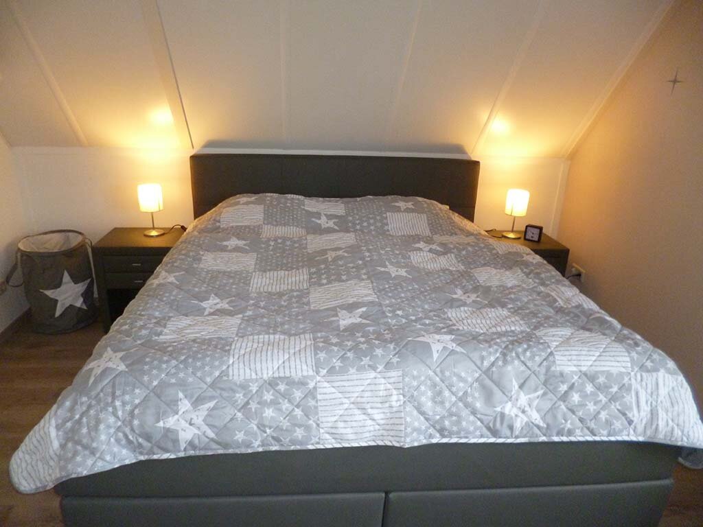 Im Obergeschoss befindet sich ein Schlafzimmer mit zwei Einzelbetten, ein Elternschlafzimmer mit Boxspringbett (1,80m x 2,00 m) sowie ein Bad mit Dusche.