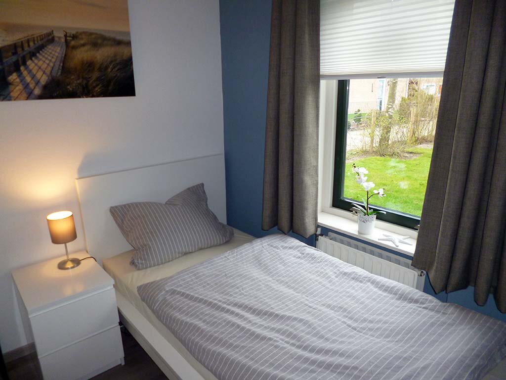 In den Schlafräumen sind blickdichte Vorhänge an den Fenstern, die kein Licht herein lassen.