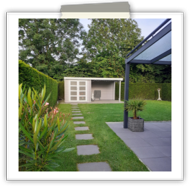 Der große Garten lädt mit Sonnenliegen zum verweilen ein. Die ringsherum recht hohe Hecke, bietet zudem Sicht- und Windschutz.